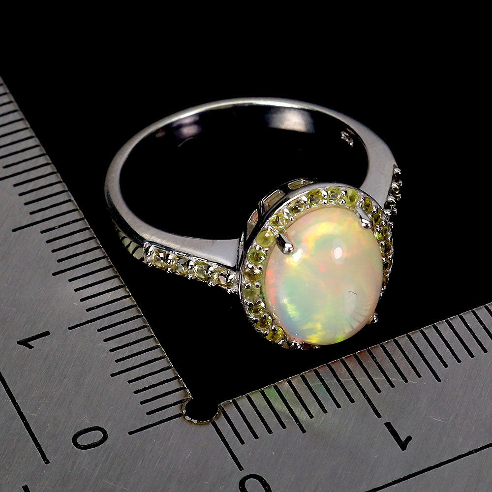 925 Sterling Silver Ring Oval Fire Opal 10x8mm Sapphire Gemstone Jewelry Size 7