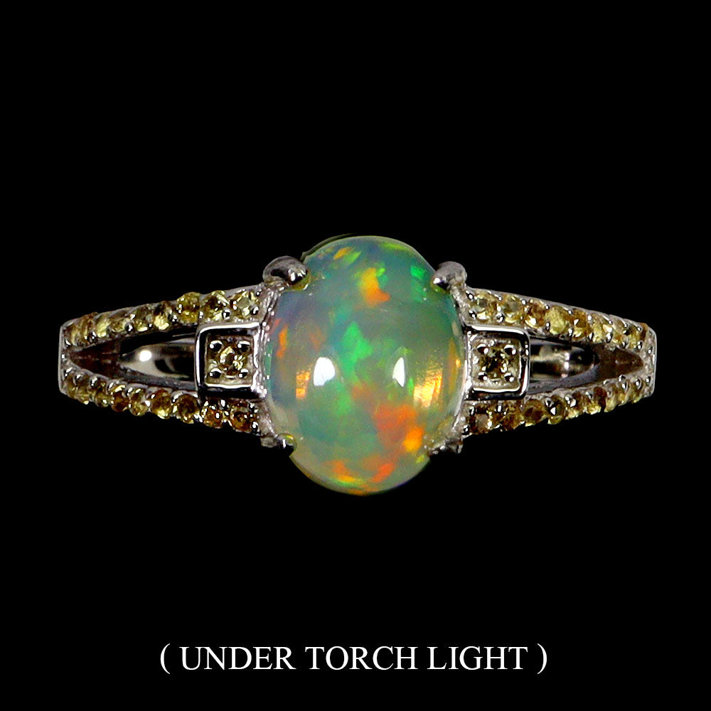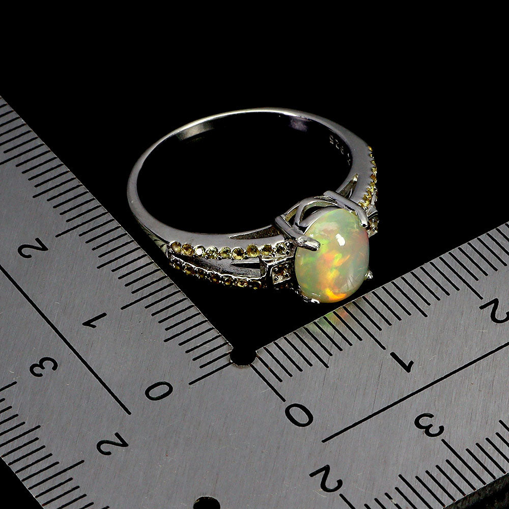 925 Sterling Silver Ring Oval Fire Opal 9x7mm Sapphire Gemstone Jewelry Size 7
