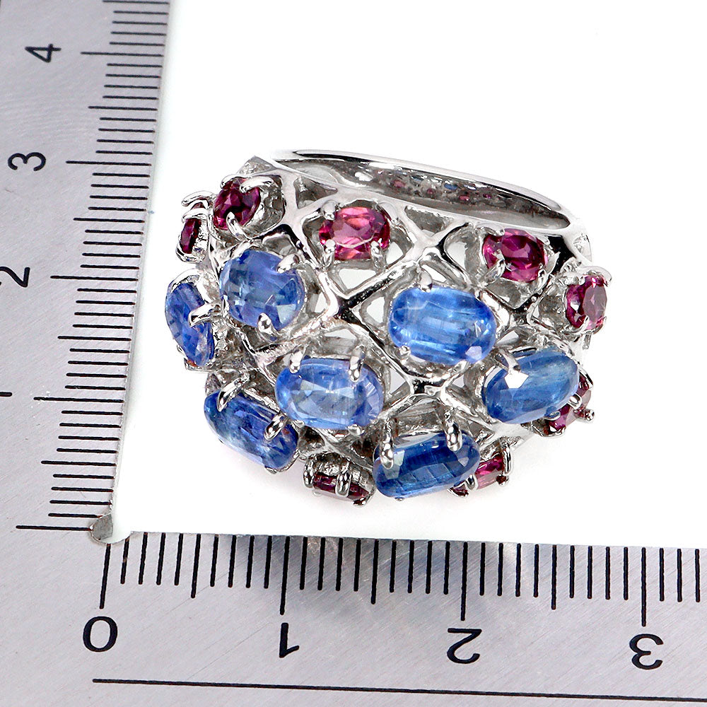 925 Sterling Silver Ring Oval Kyanite 6x4mm Rhodolite Garnet Gemstone Jewelry 7