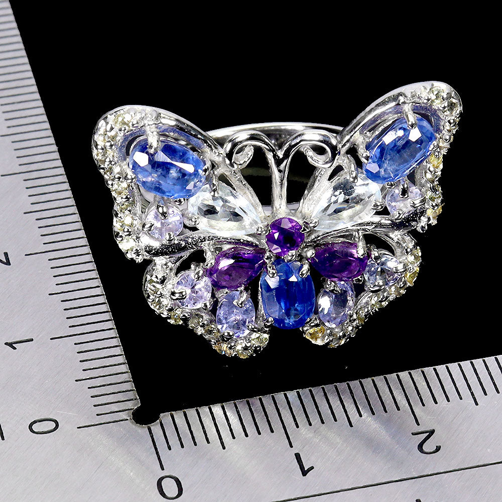 925 Sterling Silver Ring Oval Kyanite Amethyst Tanzanite Butterfly Gemstone Sz 9