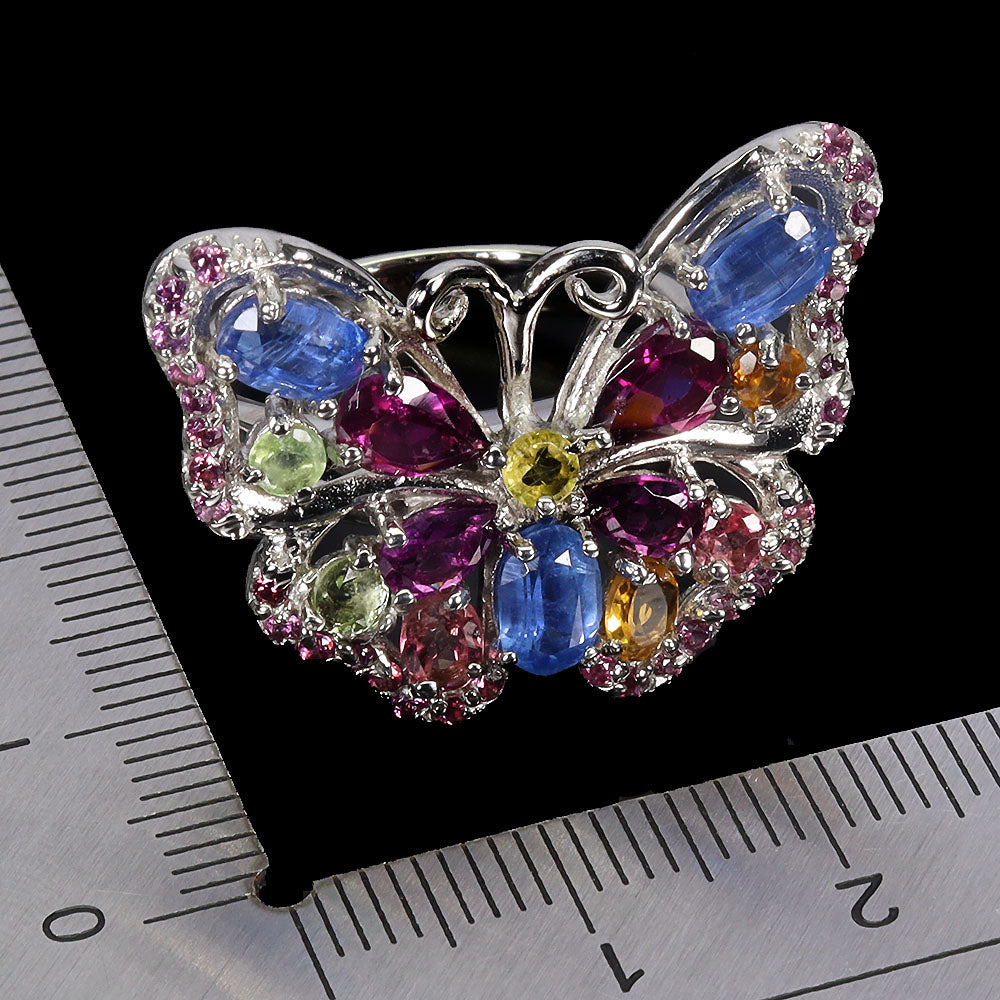 925 Sterling Silver Ring Oval Kyanite Tourmaline Butterfly Gemstone Jewelry Sz 8