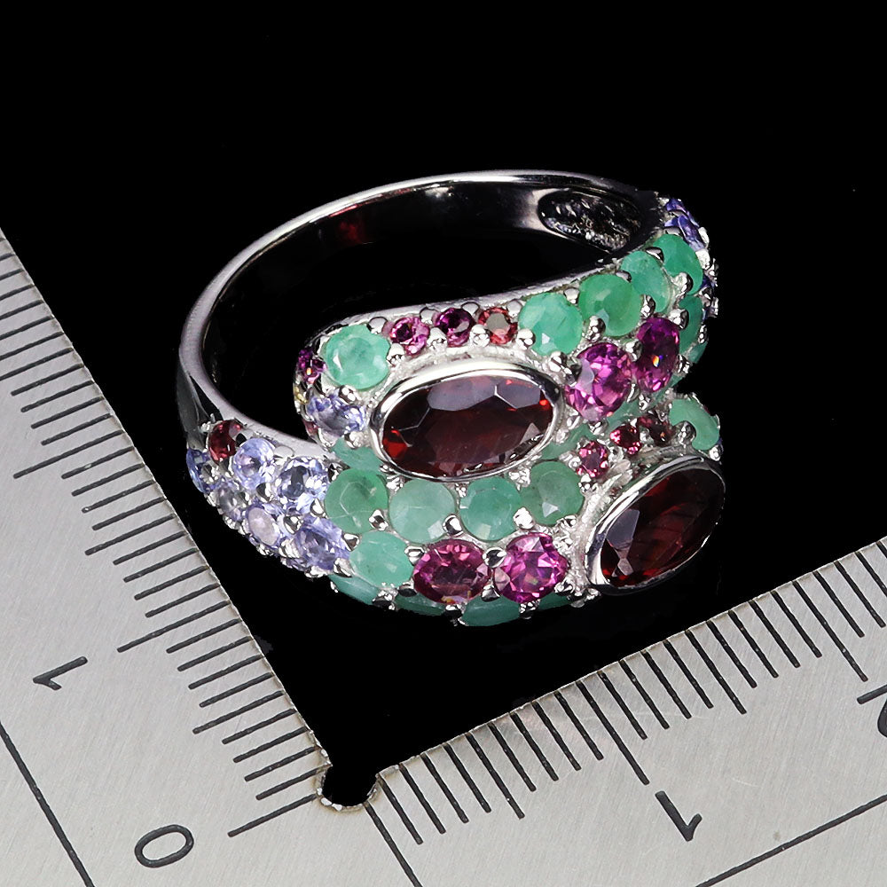 925 Sterling Silver Ring Oval Rhodolite Garnet 7x5mm Tanzanite Gemstone Size 8