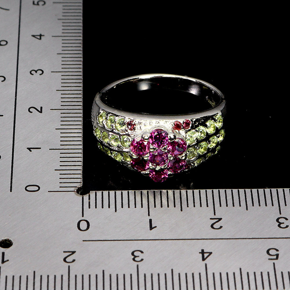925 Sterling Silver Ring Oval Rhodolite Garnet Peridot Gemstone Jewelry Sz 8.5