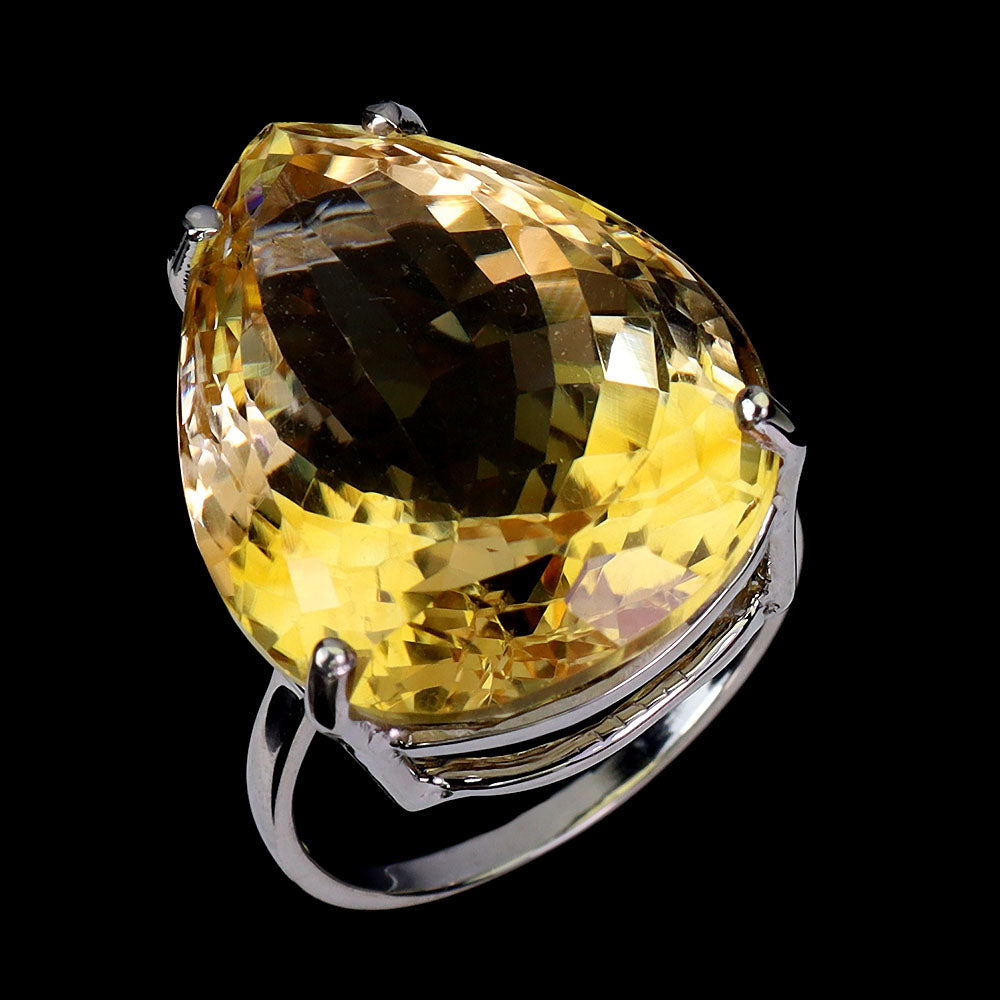 925 Sterling Silver Ring Pear Citrine 35ct Handmade Gemstone Jewelry Size 6