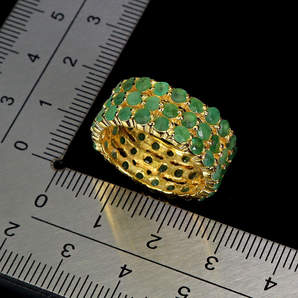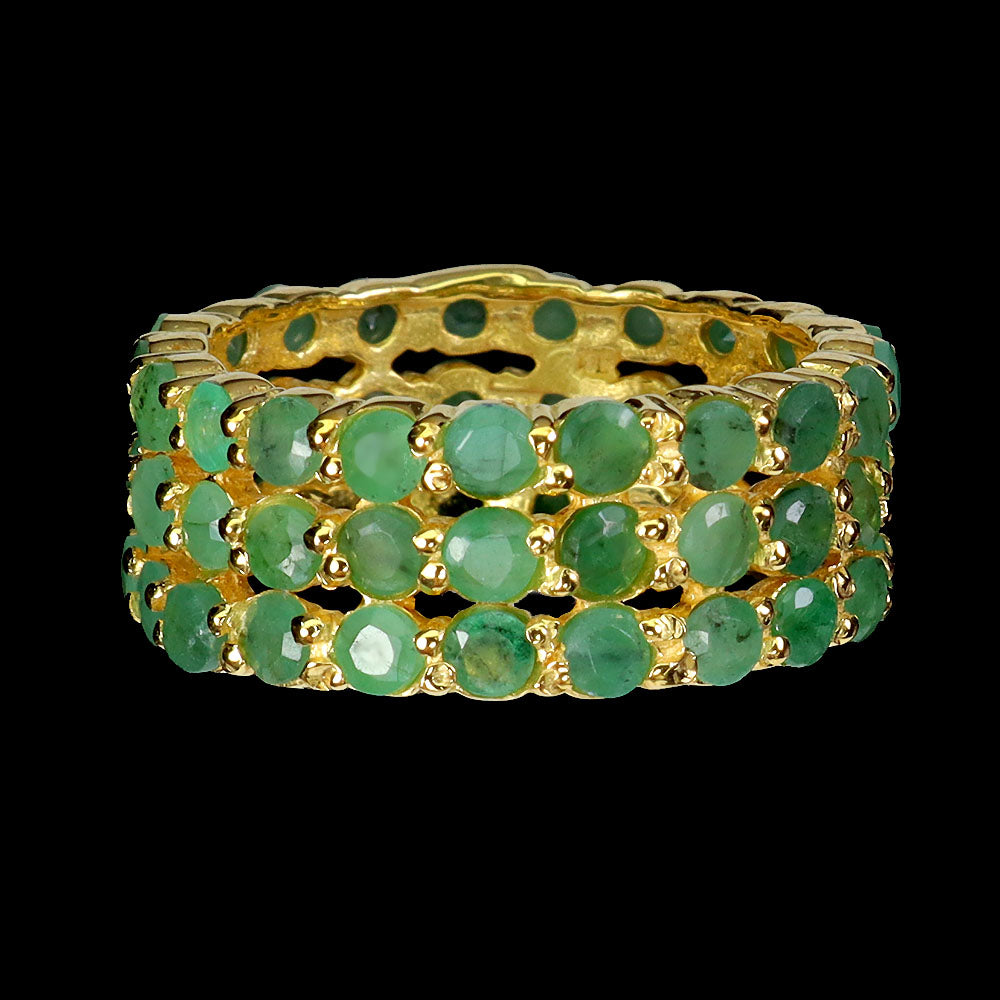 925 Sterling Silver Ring Round Emerald Natural Gemstone Jewelry Size 9
