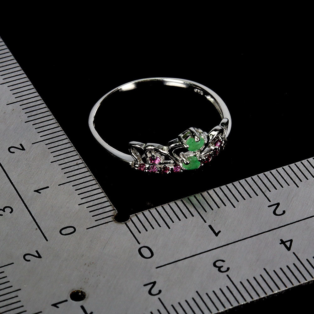 925 Sterling Silver Ring Round Emerald Rhodolite Crown Gemstone Jewelry Size 9