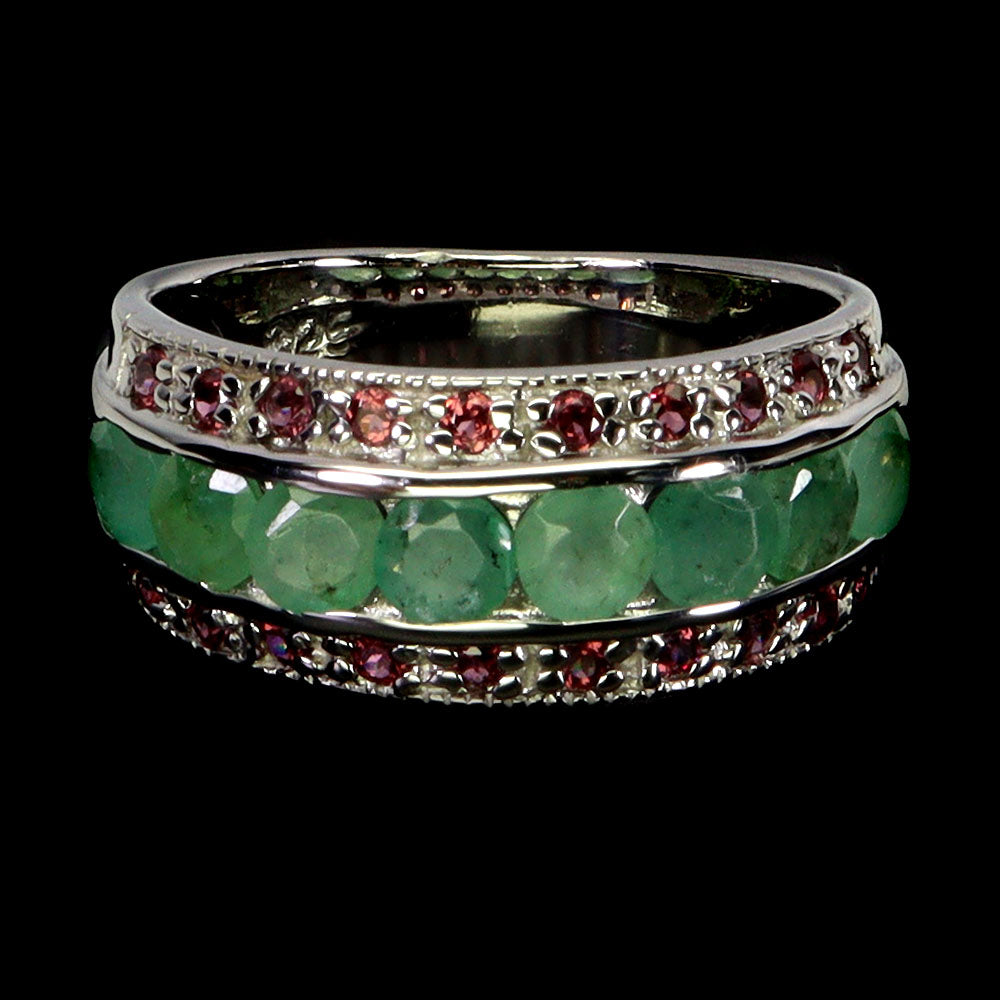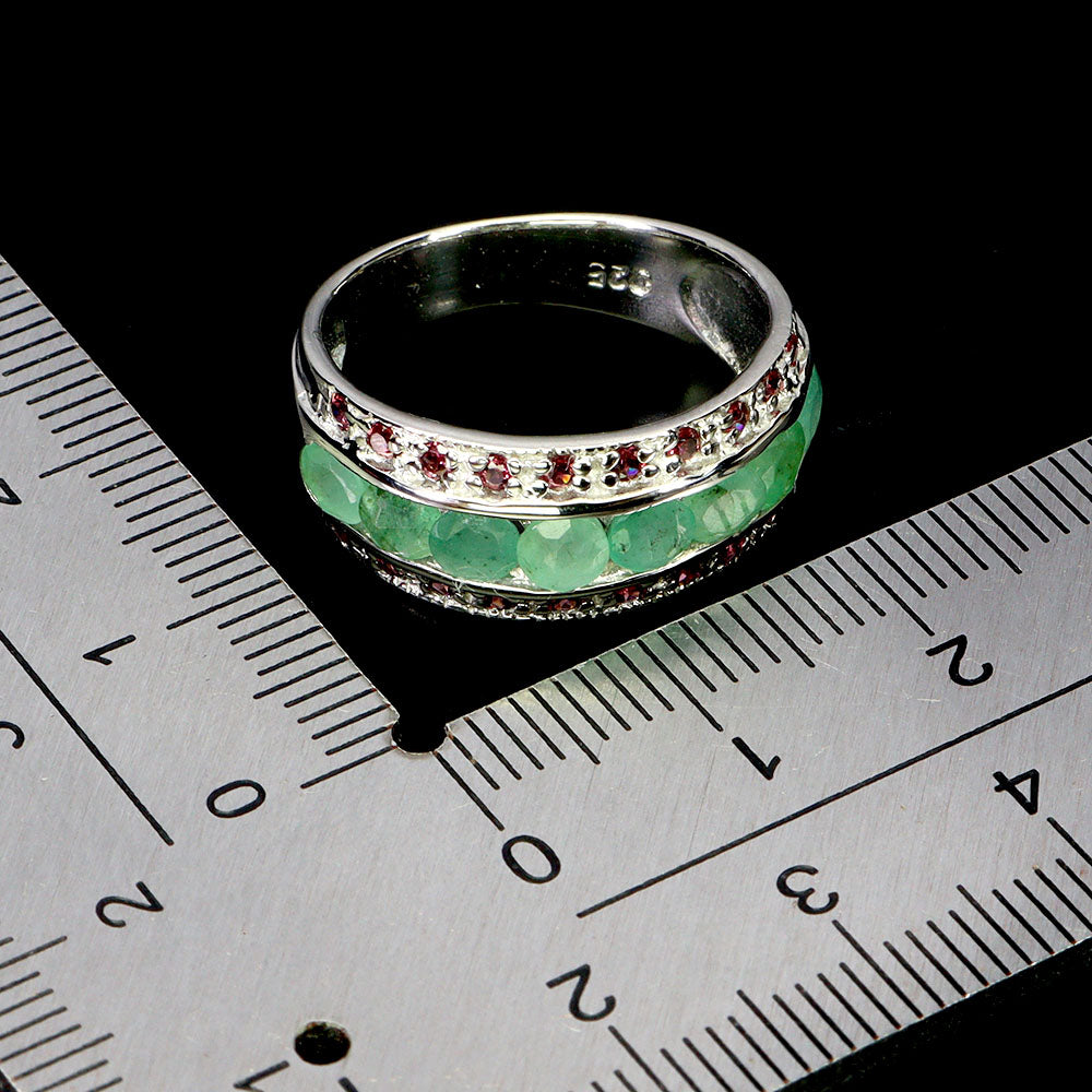 925 Sterling Silver Ring Round Emerald Rhodolite Garnet Gemstone Jewelry Sz 7.5