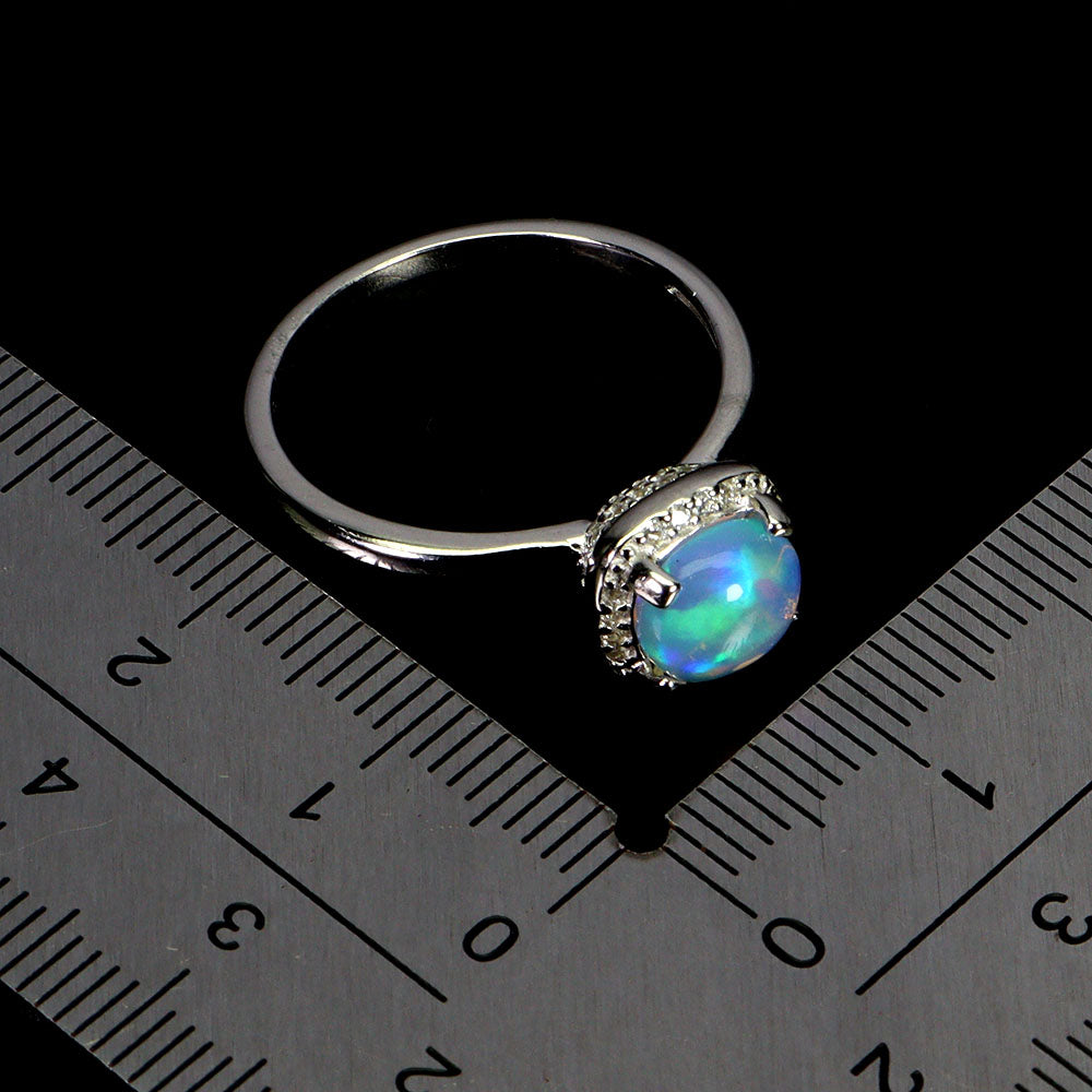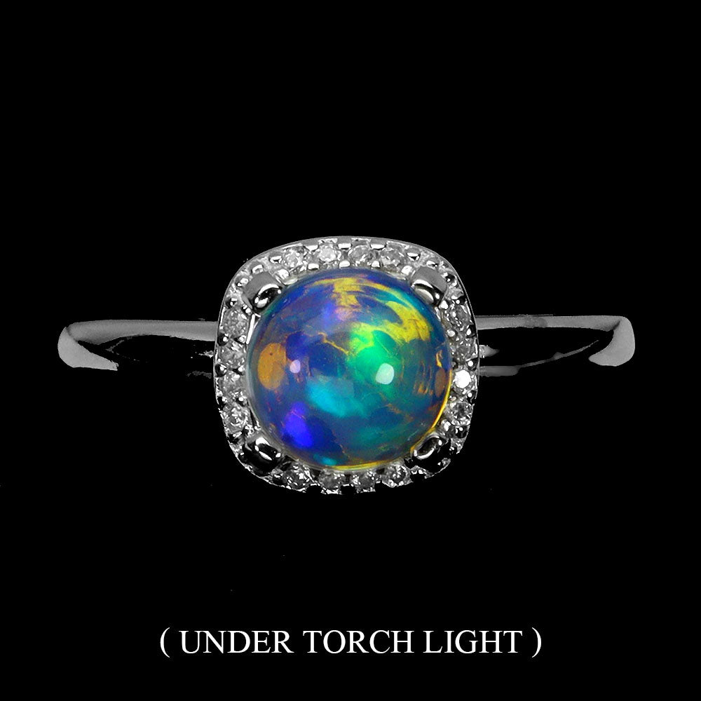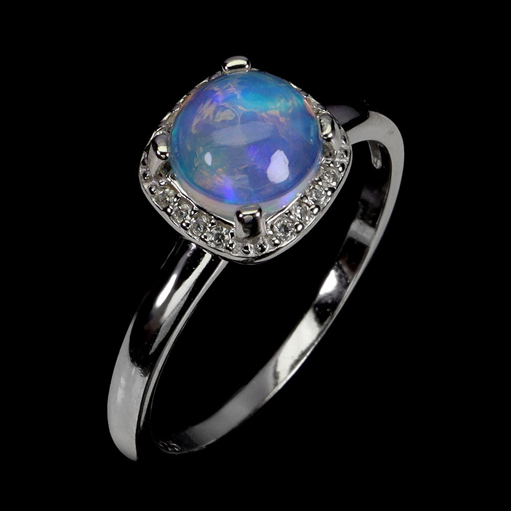 925 Sterling Silver Ring Round Fire Opal 7mm Natural Gemstone Jewelry Size 8