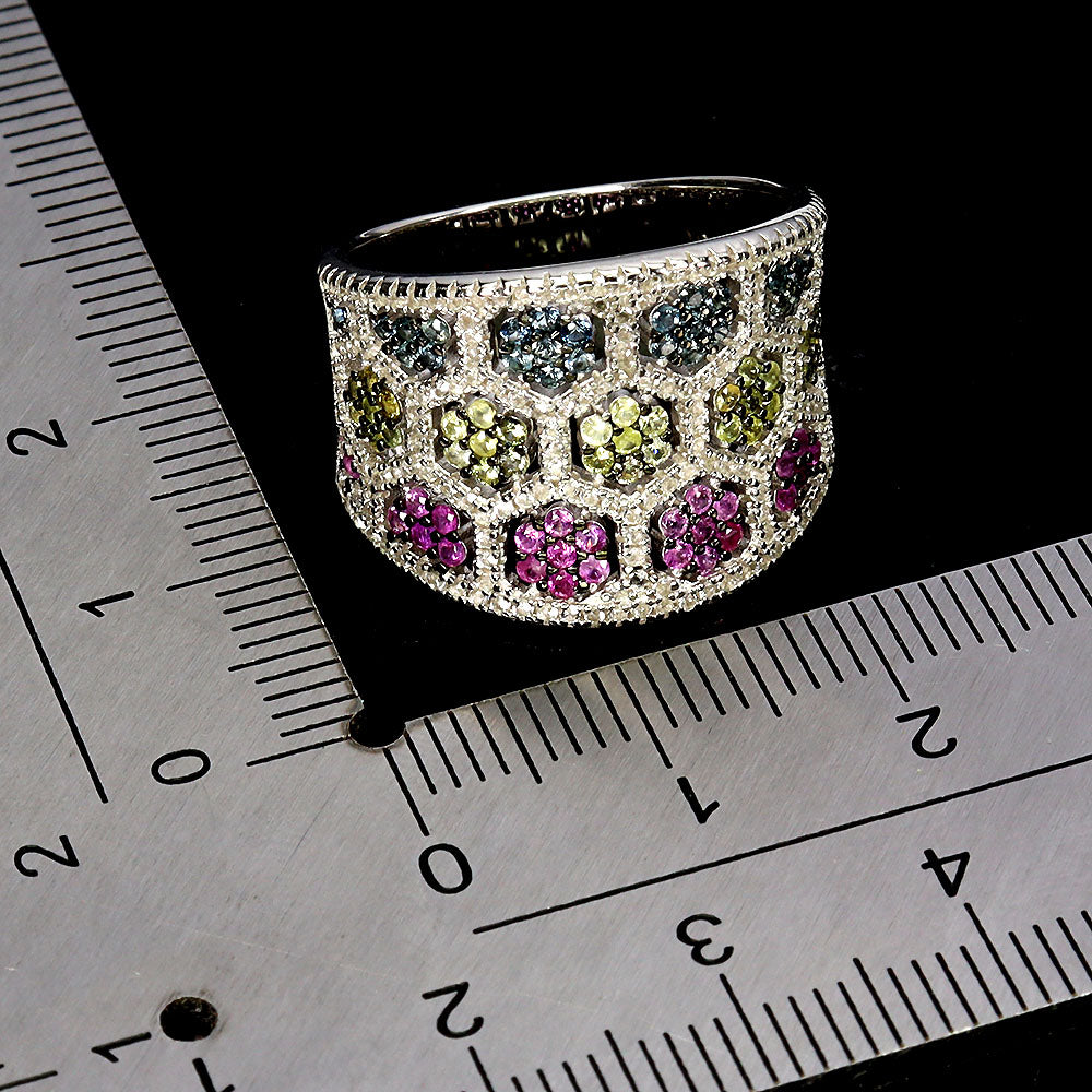 925 Sterling Silver Ring Sapphire Round Diamond Cut Topaz Gemstone Jewelry Sz 8